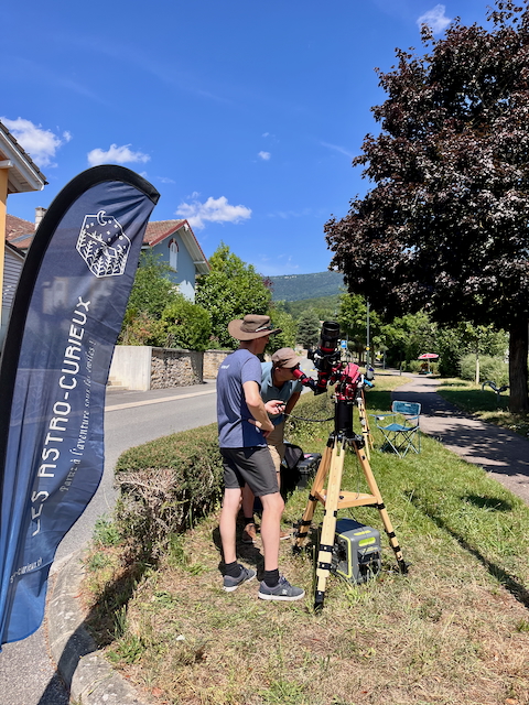 Observation publique du soleil à travers des instruments, en toute sécurité. Documentation à disposition et mini-quizz pour les plus jeunes.